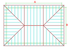 Τετράριχτη στέγη (ορθογωνική κάτοψη) - V=1/6 x Β x h x [2B+3(A-B)]