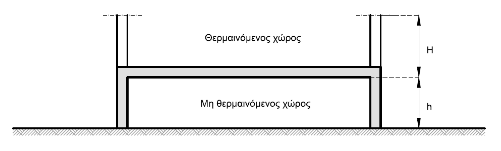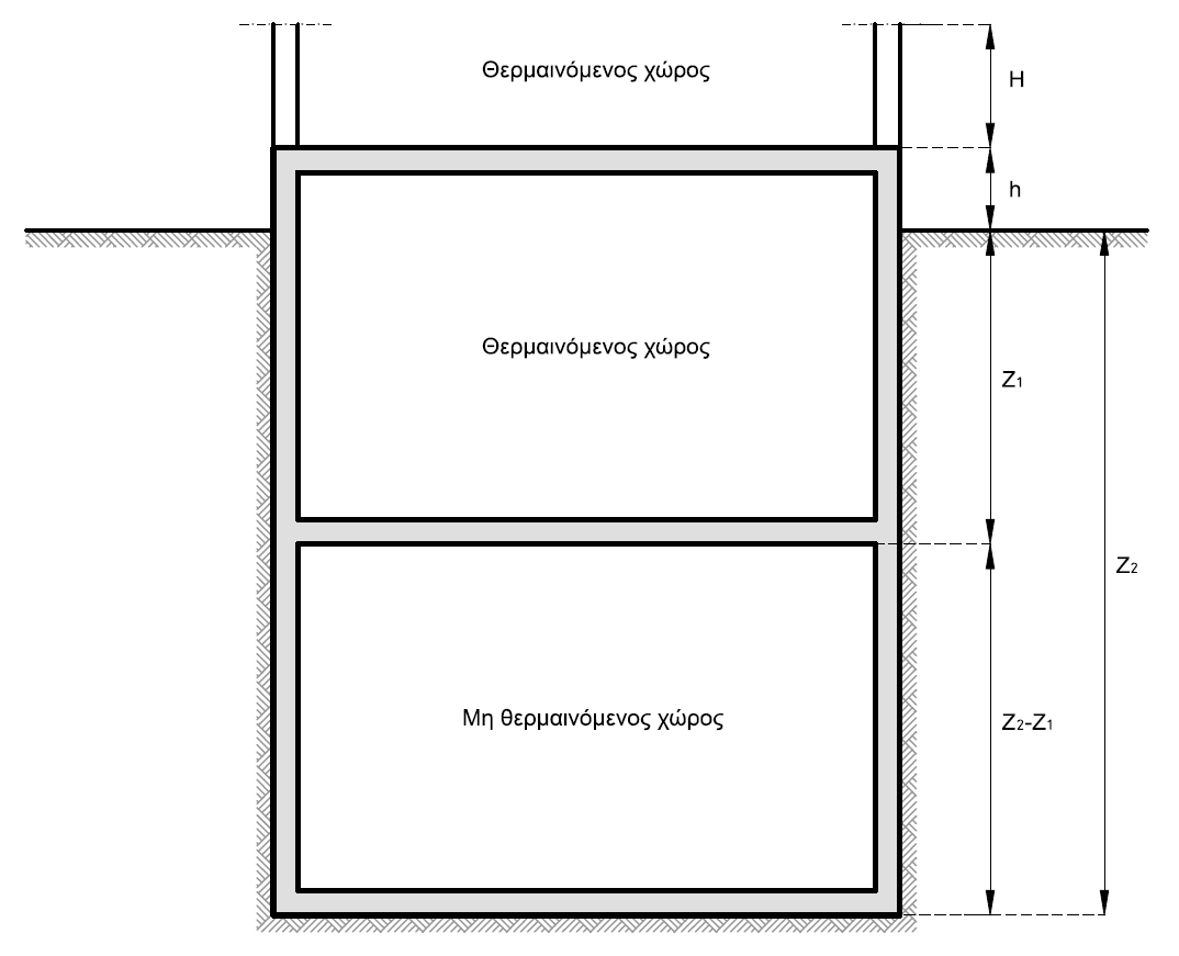 * Το δάπεδο του υπογείου θεωρείται αμόνωτο σκυρόδεμα (30cm) σε επαφή με το έδαφος.
