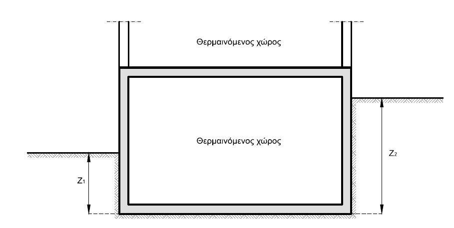 Εάν το δάπεδο εδράζεται σε διάφορες στάθμες λόγω κλίσης του εδάφους τότε μέσο Ζ ή z=(z1+z2)/2